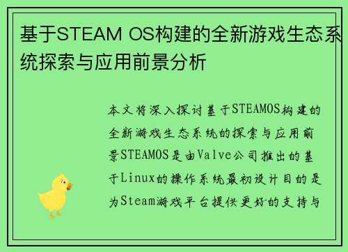基于STEAM OS构建的全新游戏生态系统探索与应用前景分析
